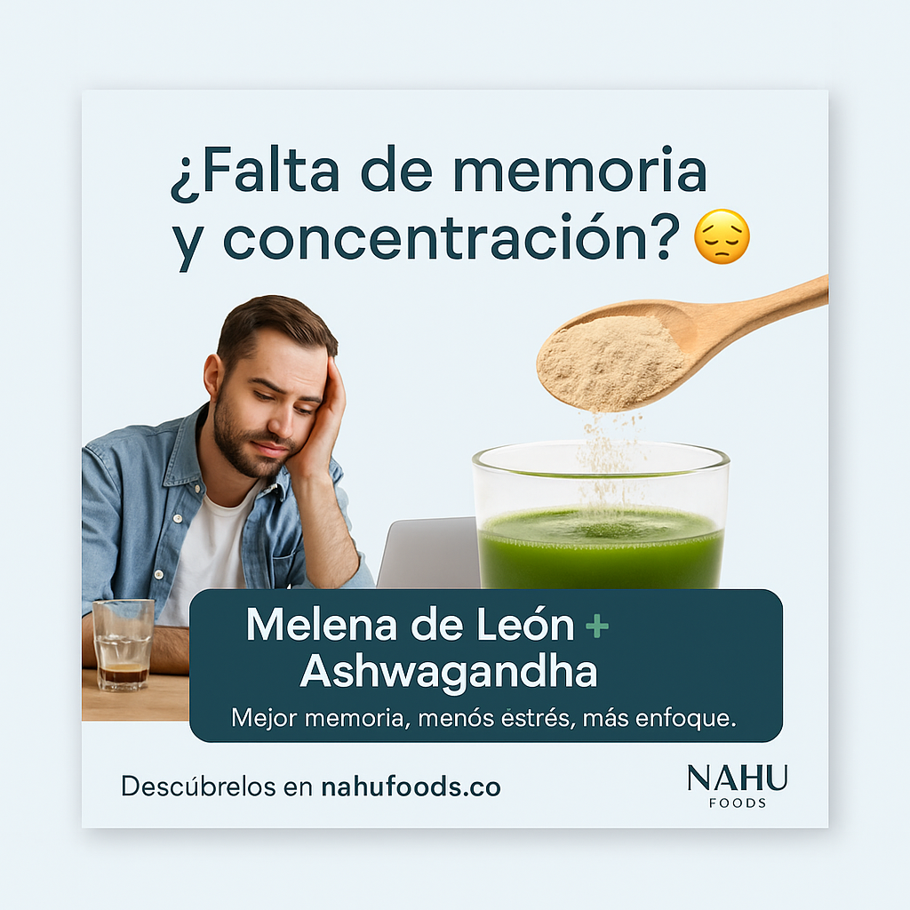 ✨ Pack Calma y Enfoque combina Melena de León y Ashwagandha en polvo para potenciar tu memoria, mejorar tu concentración y mantener el estrés bajo control. Bienestar mental 100% natural.